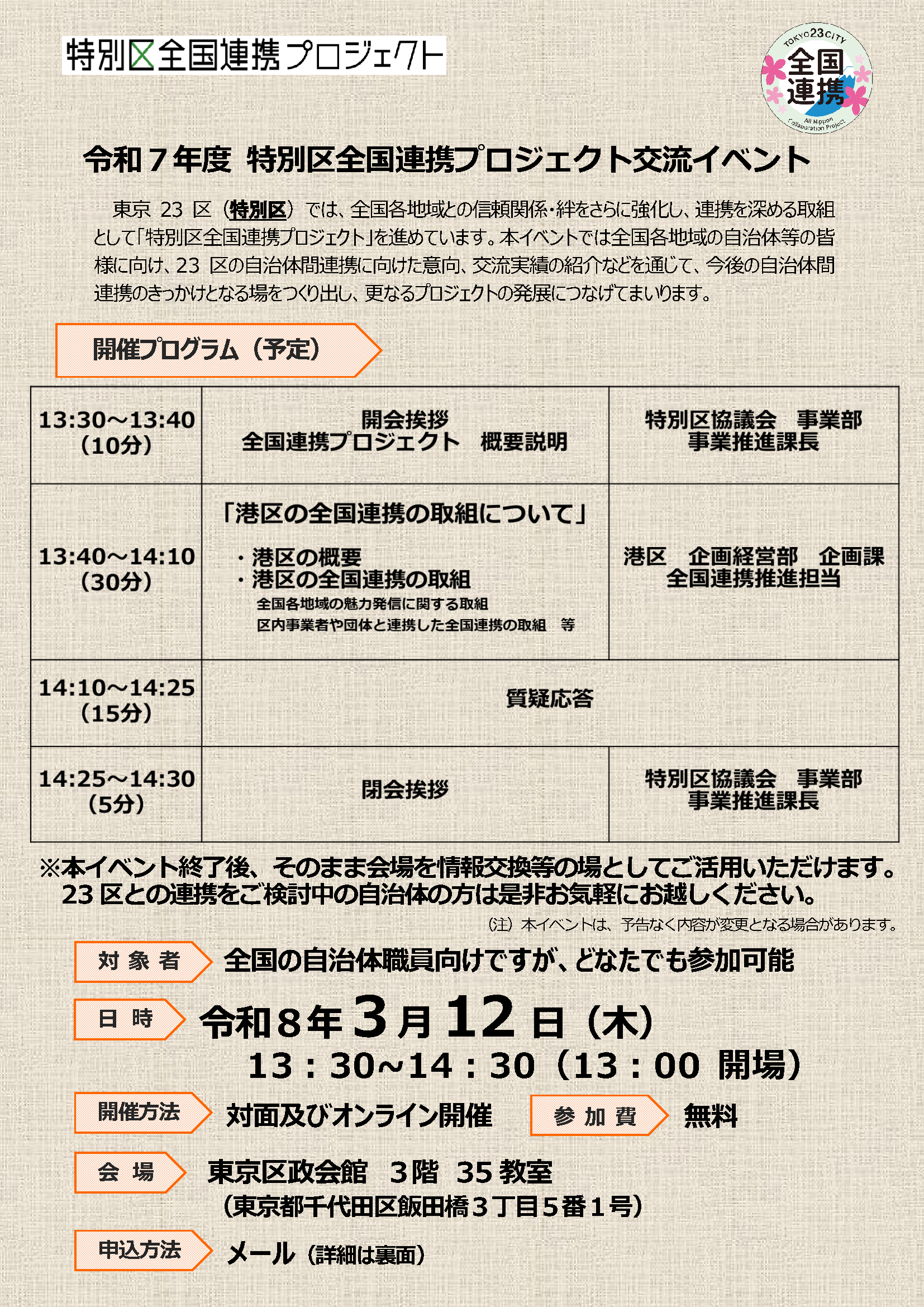 特別区全国連携プロジェクトの推進を目的として、交流イベントを開催します。