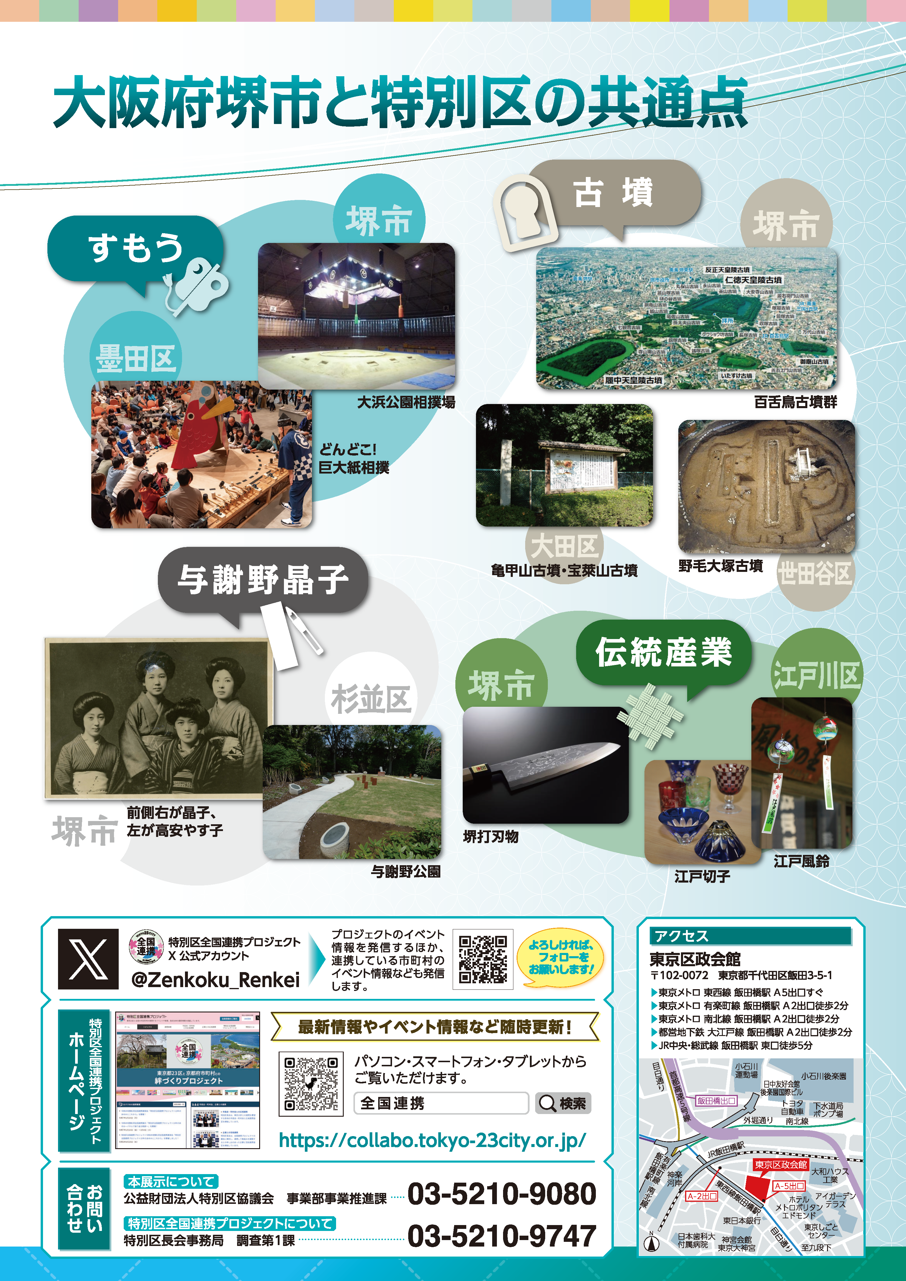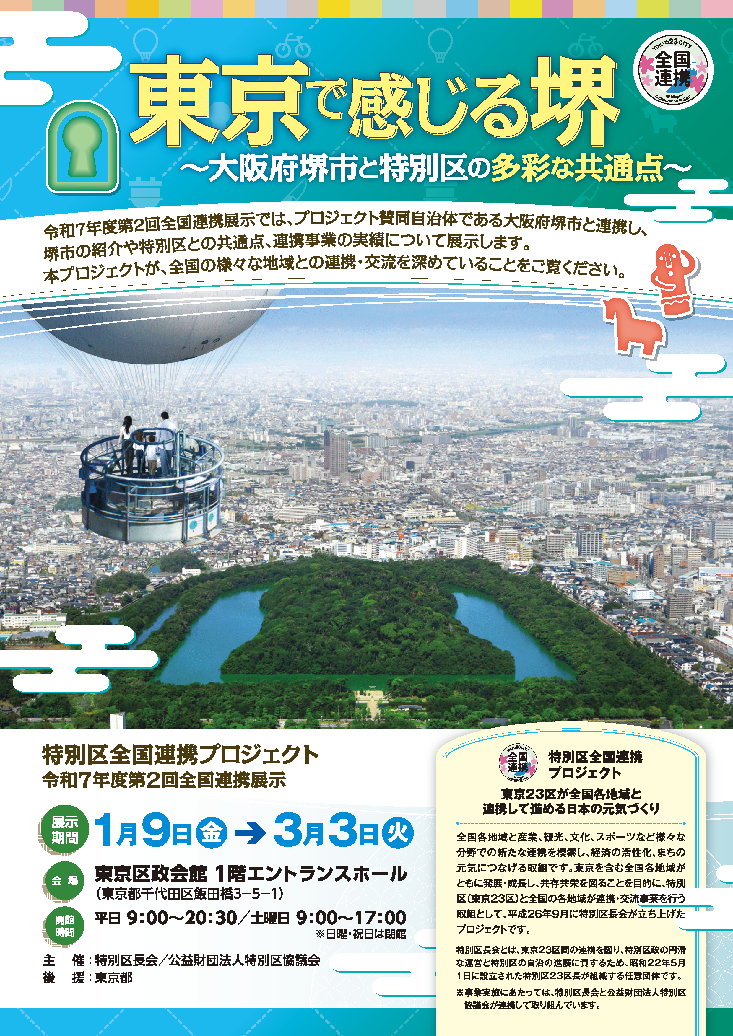令和7年度第2回全国連携展示では、プロジェクト賛同自治体である大阪府堺市と連携し、堺市の紹介や特別区との共通点、連携実績等について展示します。
